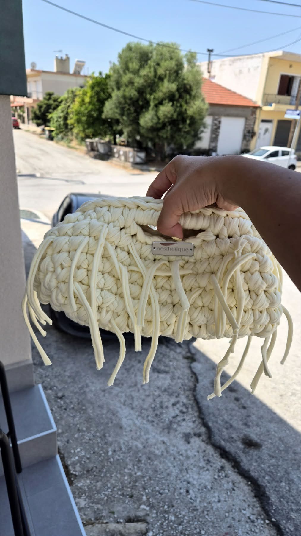 Μια καθημερινή τσάντα φτιαγμένη από βαμβάκι, ιδανική για να σε κάνει να ξεχωρίσεις. Χάρη στον σχεδιασμό της την καθιστά ευρύχωρη(ιδανική για όλα τα καθημερινά πράγματα που χρειάζεστε) και κλείνει με μεταλλικό έλασμα για ασφάλεια. Φτιάχνεται και με άνοιγμα στο χερούλι για καλύτερο κράτημα και χωρίς. Επίσης γίνεται και χωρίς κρόσια. Όλα γίνονται κατόπιν επικοινωνίας στο Instagram.